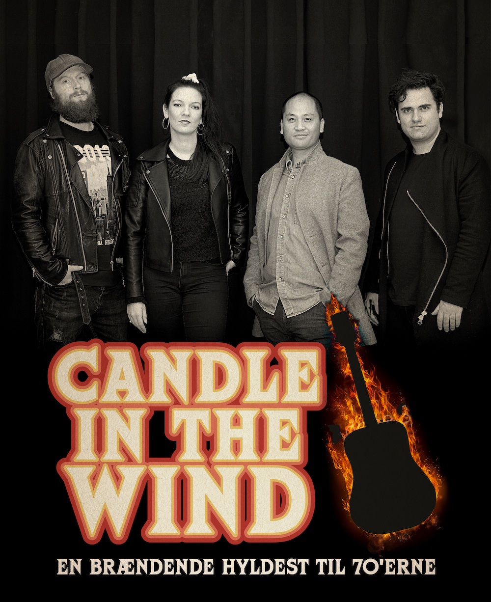 Med CANDLE HE WIND får I den musikalske historie om 70’erne. En rødglødende hyldest til de fantastiske musiknumre, som alle var stærkt influeret af de begivenheder, som foregik i løbet af dette mangfoldige årti. CANDLE IN THE WIND vil således indeholde uimodståelige indslag fra både Bee Gees og ABBA men også indeholde ikoniske rocknumre, som Stairways To Heaven og Highway To Hell sammen med evergreens fra både Queen, Electric Light Orchestra, David Bowie og naturligvis Elton John. Og mon ikke der også sniger sig noget Gasolin og Shu-Bi-Dua ind i CANDLE IN THE WIND?