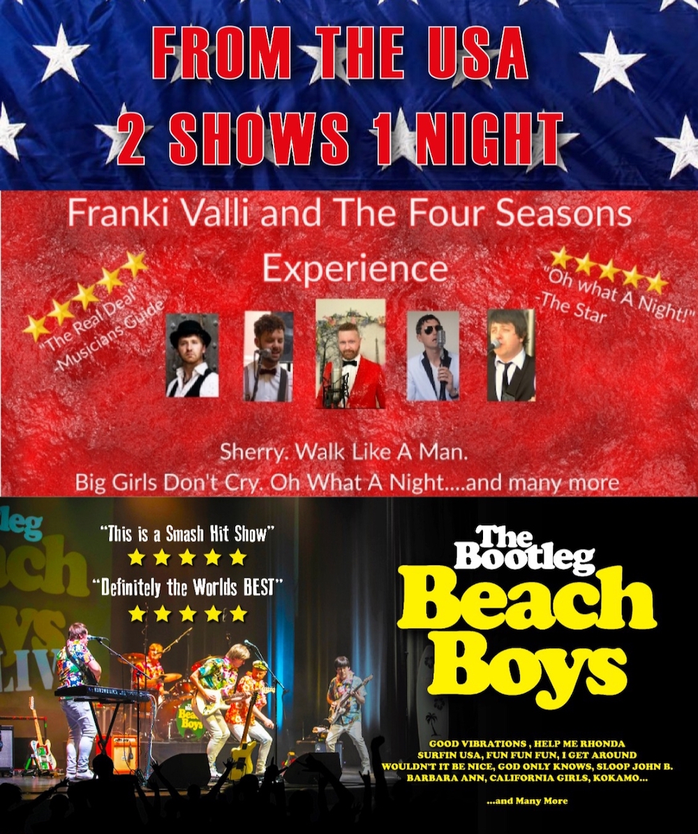 “Frankie Valli og The Four Seasons Experience” og “The Bootleg Beach Boys”.
