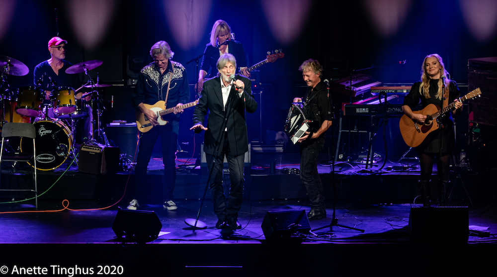 ”Vi har så meget en fest på scenen imellem os, og en samlet udstråling, der kan mærkes helt ned på de allerbagerste rækker, og fordi der også er plads til de lidt poetiske og melankolske sange i programmet, så sendte vi hver aften publikum nynnende hjem, med smil på læben og sporene fra en lille våd tåre i øjenkrogen” – siger sangeren storsmilende.