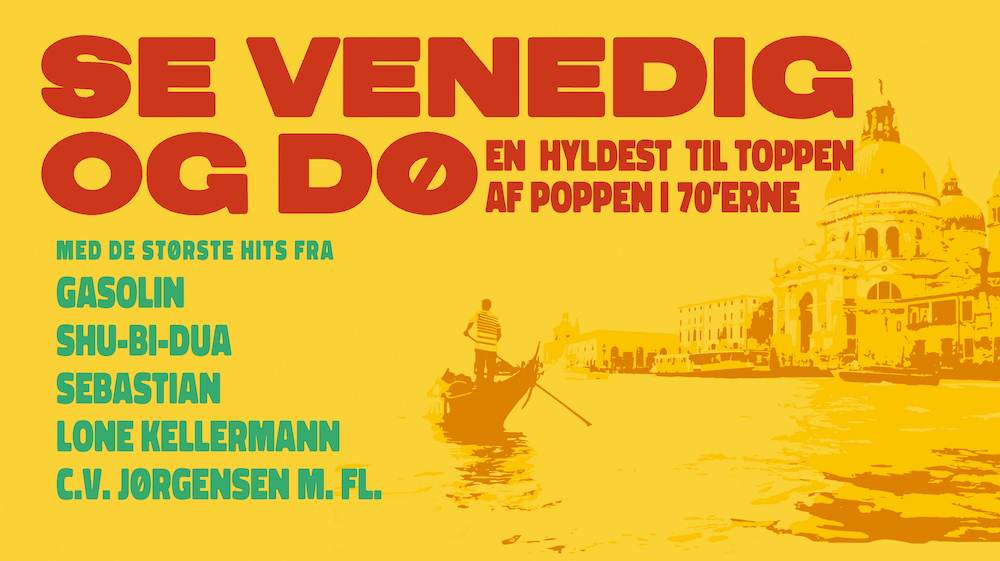 I SE VENEDIG OG DØ kan I se frem til at høre en lang række af de største og mest elskede danske hits fra slutningen af 70’erne fra både Gasolin, Shu-Bi-Dua, Sebastian, C.V. Jørgensen, Rugsted & Kreutzfeldt m.fl.